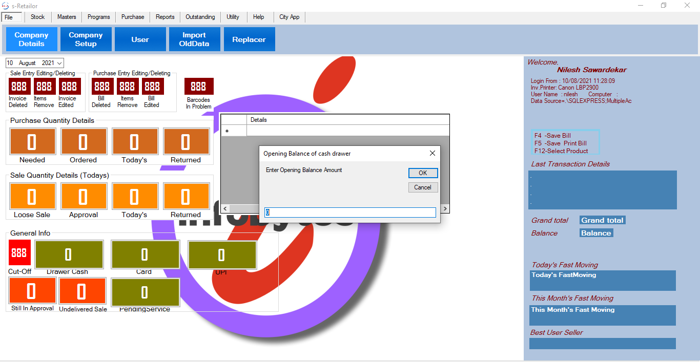 • Cash Invoice Amount can be automatically Added and Deleted int the Cash Drawer