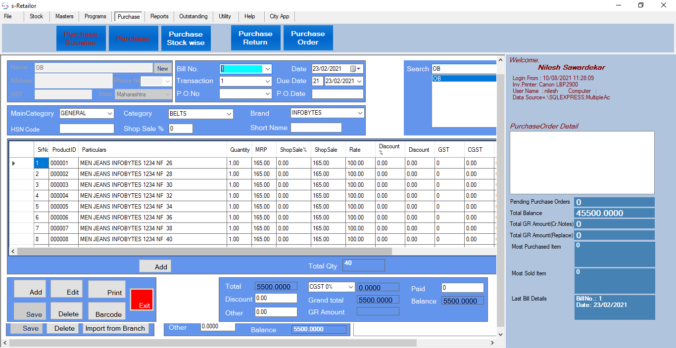 Billing Software for Garments/Shoes