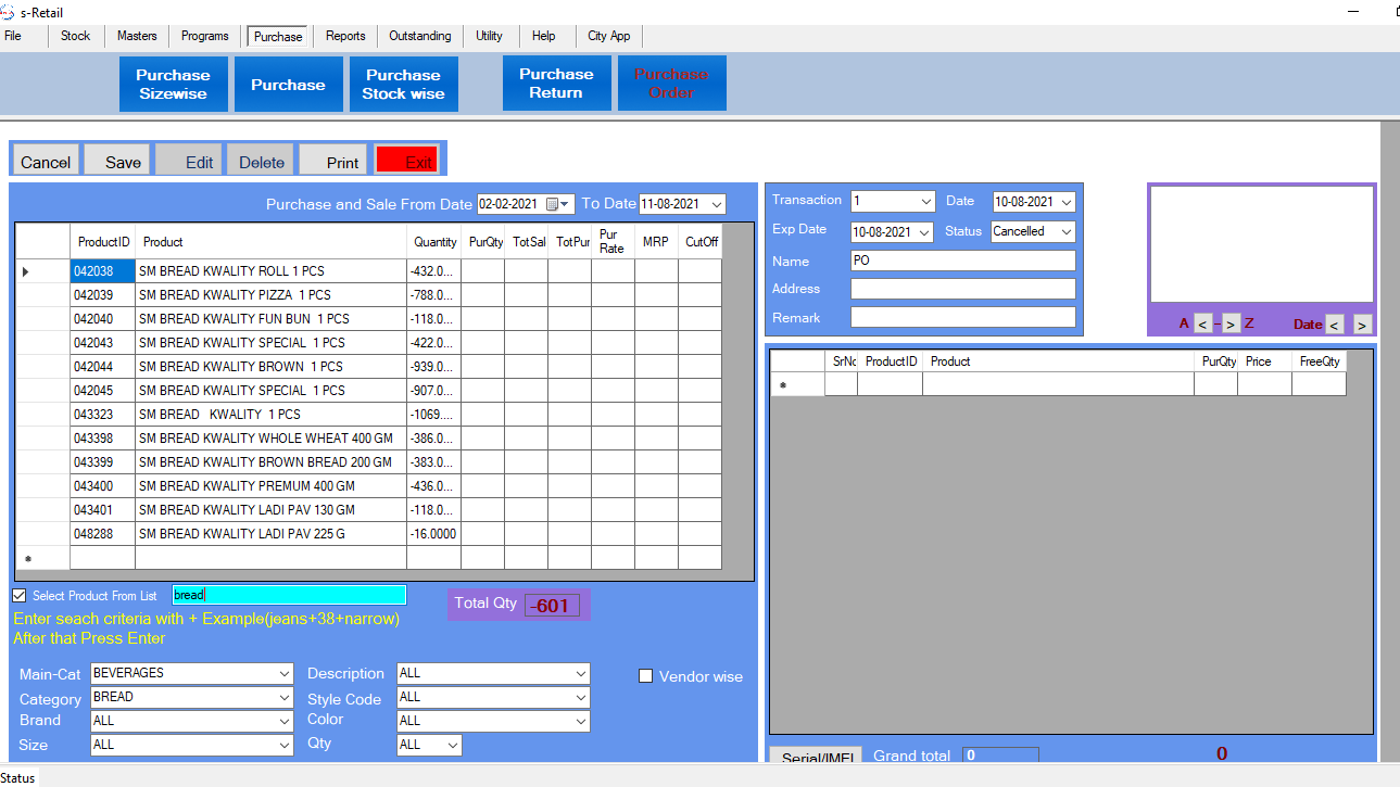•  Purchase Stock-Wise Window