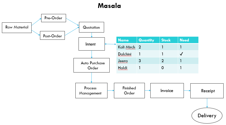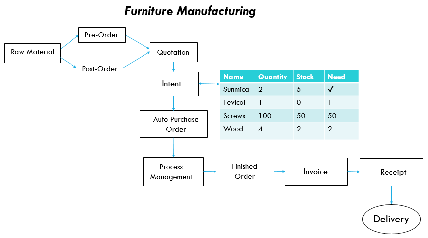 • Intent:-Once you've gathered your raw materials, you'll make a list of how much of each item you'll need to construct the table, such as glue: 1, ply sheets: 2 and screws:10 and so on,after that you'll see available stock of your requirement