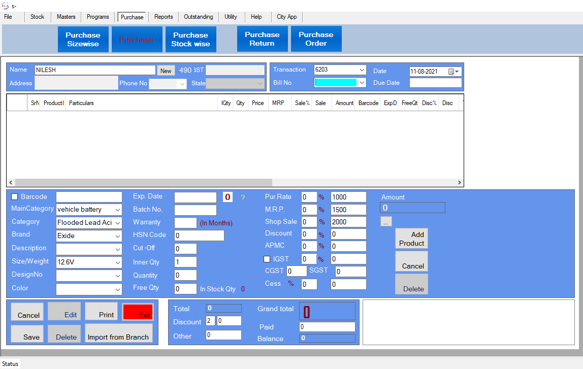 •   When you make a purchase entry, the product is automatically add to the product master; you do not need to manually create it.