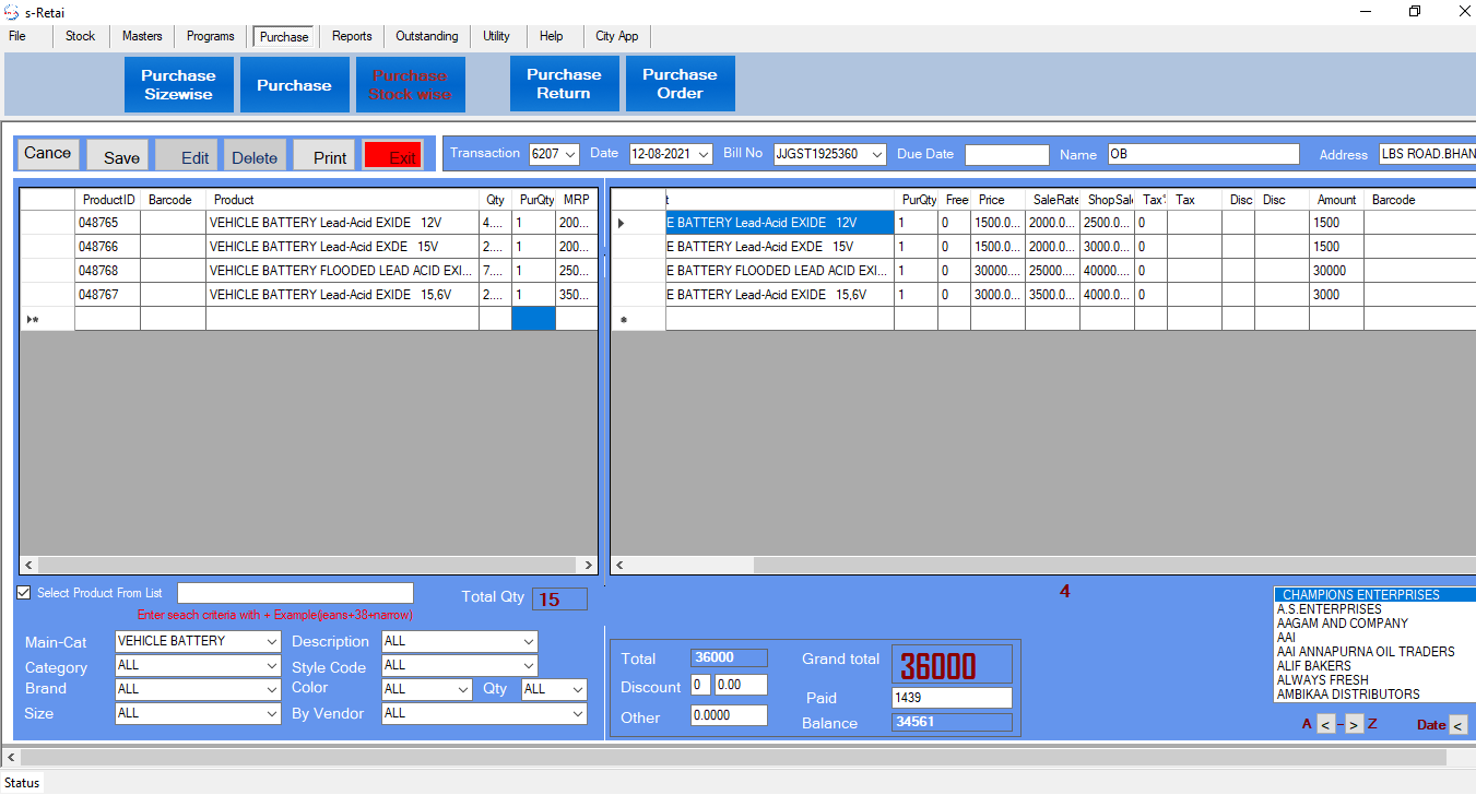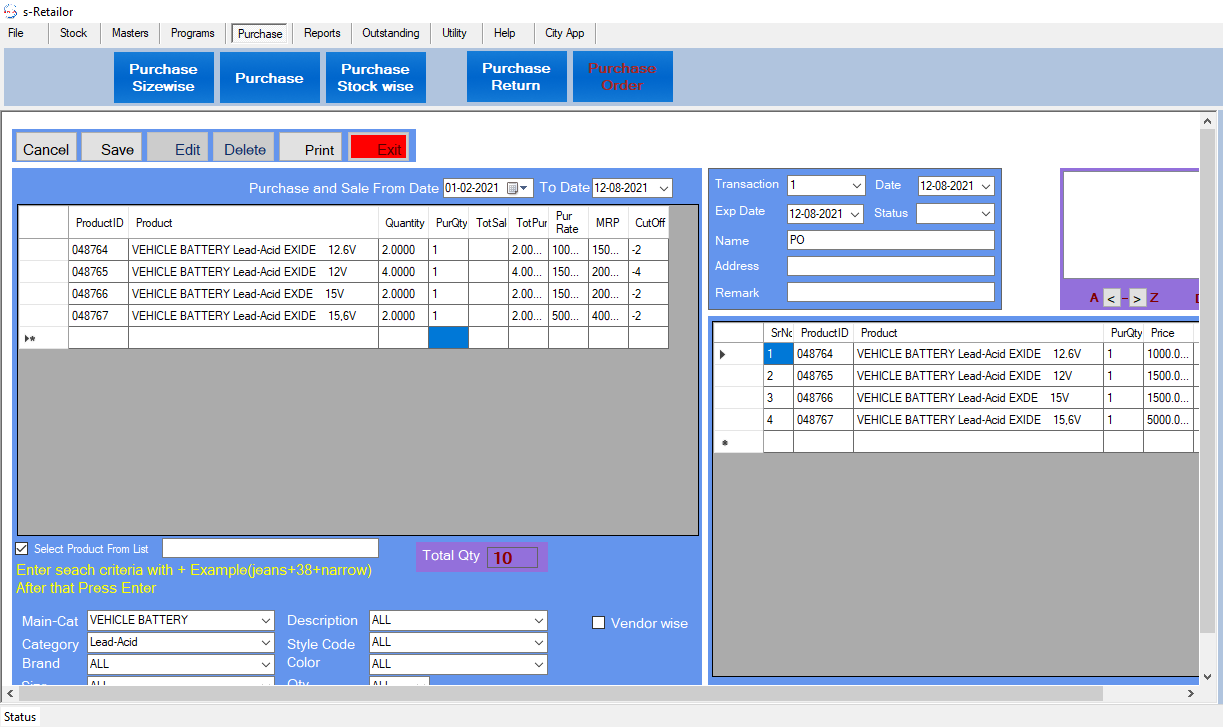 According to Stock Demand and Quantity the software will create Purchase Orders automatically, you can create your purchase entry from purchase order or you can create it manually.