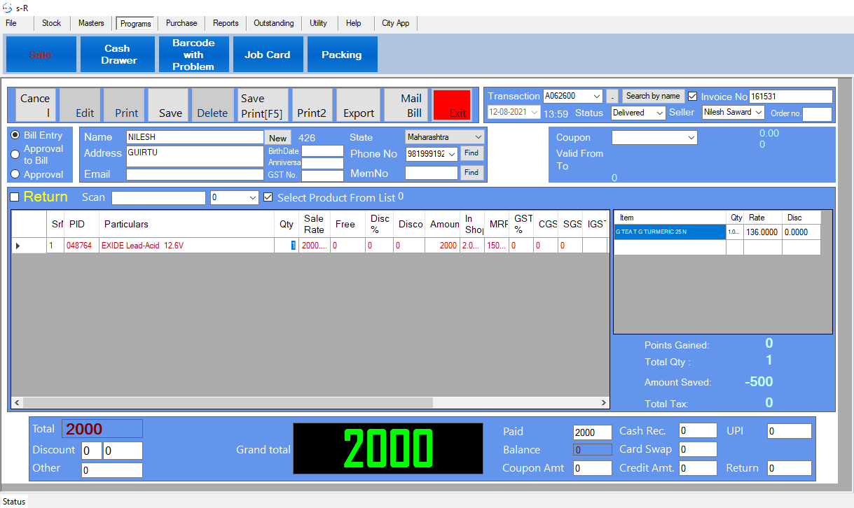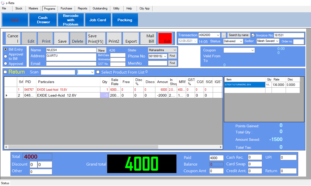 •   You can maintain Points and Coupons, Payments(Cash/ Card /UPI) as well as GST and Non GST Bills in the System