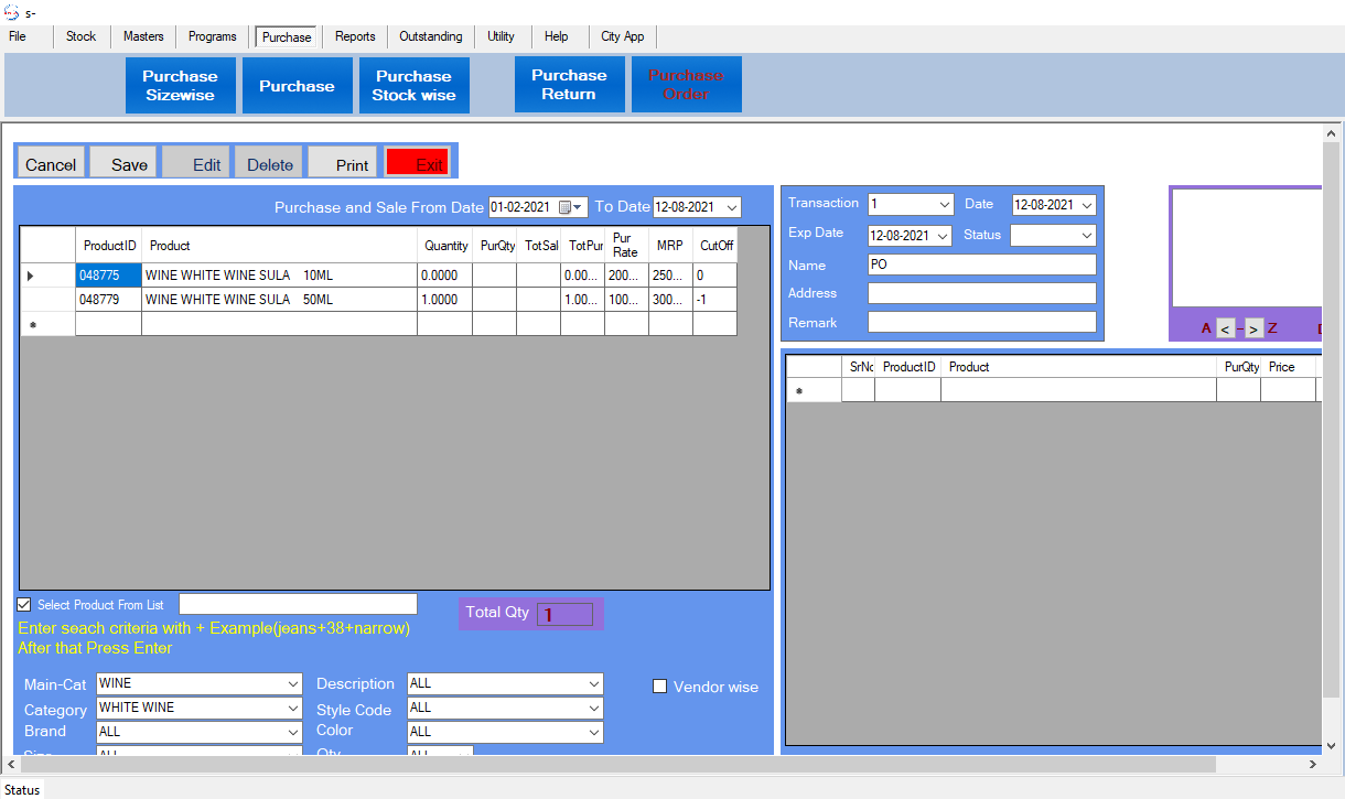 •  Purchase Stock-Wise Window