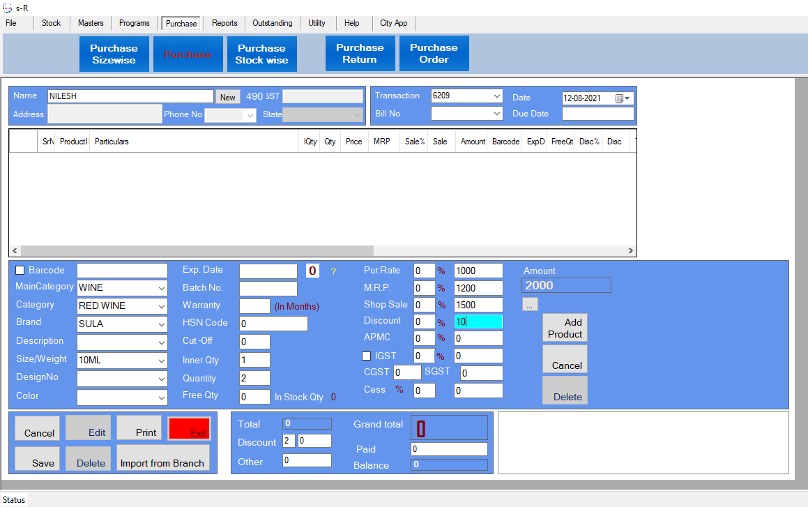•  Add purchased item by Barcode, Item Code and Item Name