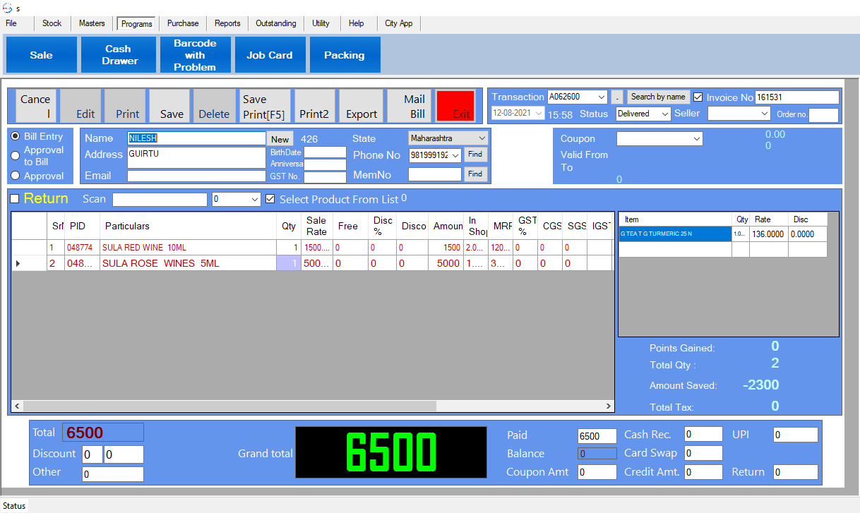 Billing Software  for Wine