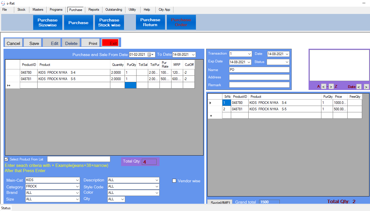 •  Purchase Stock-Wise Window