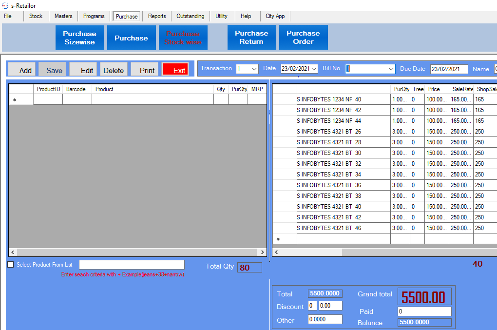 Billing Software for Garments/Shoes