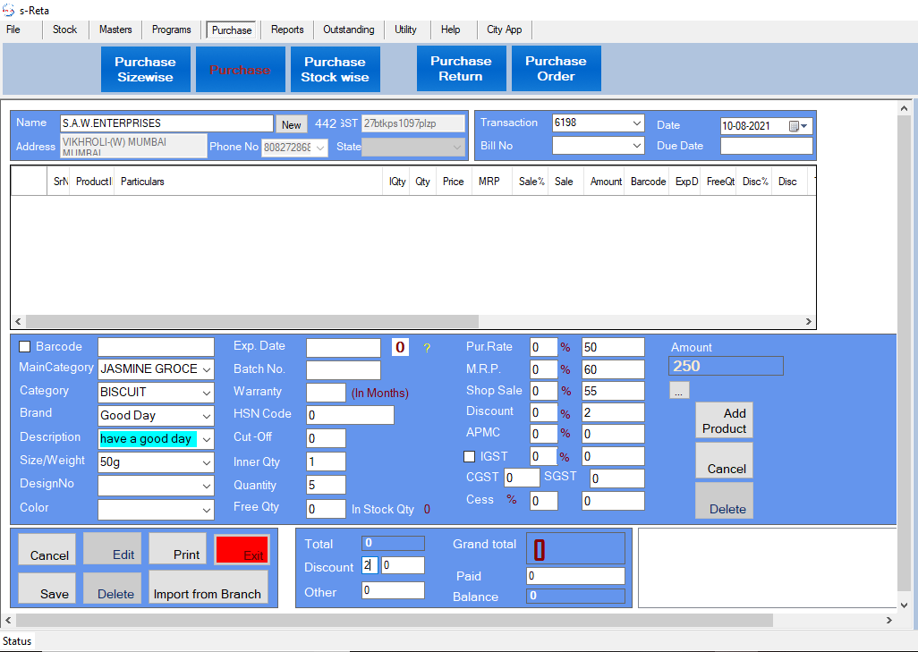 •  Can Set and Edit the MRP of the product's by providing the purchase rate and profit rate details
